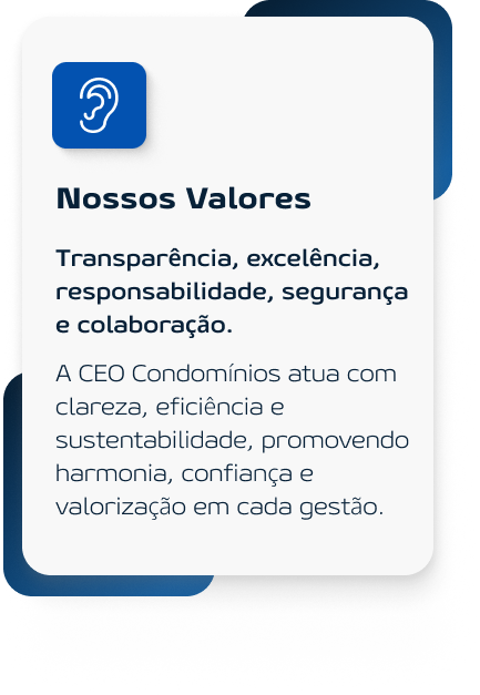 A CEO Condomínios tem o propósito de inovar e profissionalizar a gestão condominial, unindo transparência, segurança e eficiência.